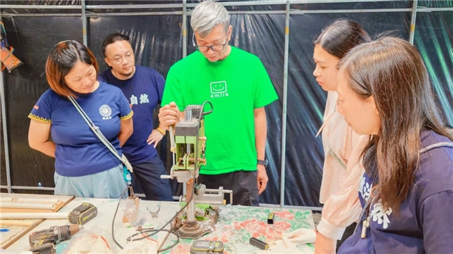 在财哥的耐心指导下,义工们投身于一场从无到有的创造过程。从精确画线、准备材料、裁剪胶喉,到钻孔、用𠝹条切割木材、精密对位、上紧螺丝及安装玻璃切割刀头,每一步工序都考验着义工们的耐心与巧思。他们运用各式螺丝、螺帽与弹片,将零散部件逐一组装成型。过程中,师兄们通力协作,互相支援,最终成功制作出多块坚固实用的专业切割板。