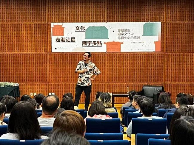 为推动文化扎根于社区,促进传统文化与现代生活的对话,文化局于昨日在澳门艺术博物馆举办了一场题为「庙宇文化中寻觅生命的意义」的讲座,旨在让文化走进社区。本次活动特邀枫燧堂道家文化研究学者易烊枫燧先生担任主讲,以轻松幽默的方式从庙宇文化展开,涵盖拜神缘由、佛道分别、庙宇修心、地域运势等话题,透过分享和互动问答,探讨人生的乐趣和意义,现场吸引过百观众前来参与。